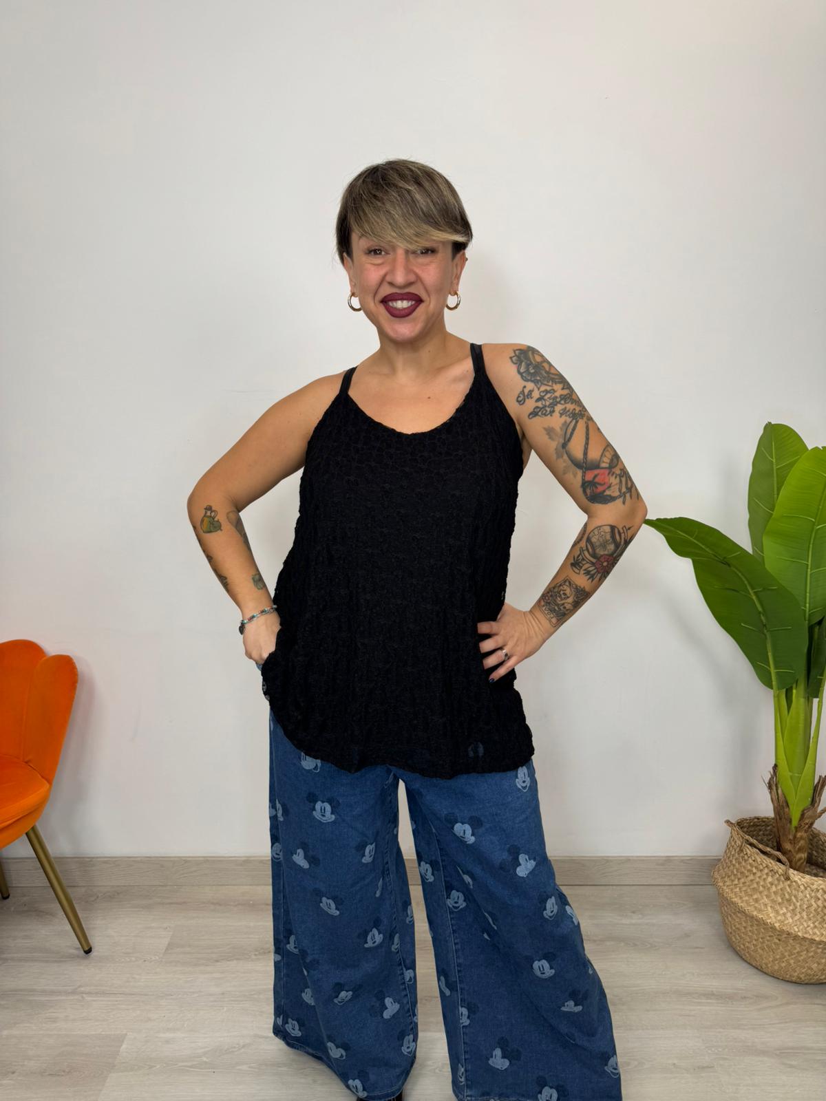 CANOTTA LIVIA con bretelle elastiche regolabili, trama ricamata in trasparenza con sottoveste coprente, elastico sul retro