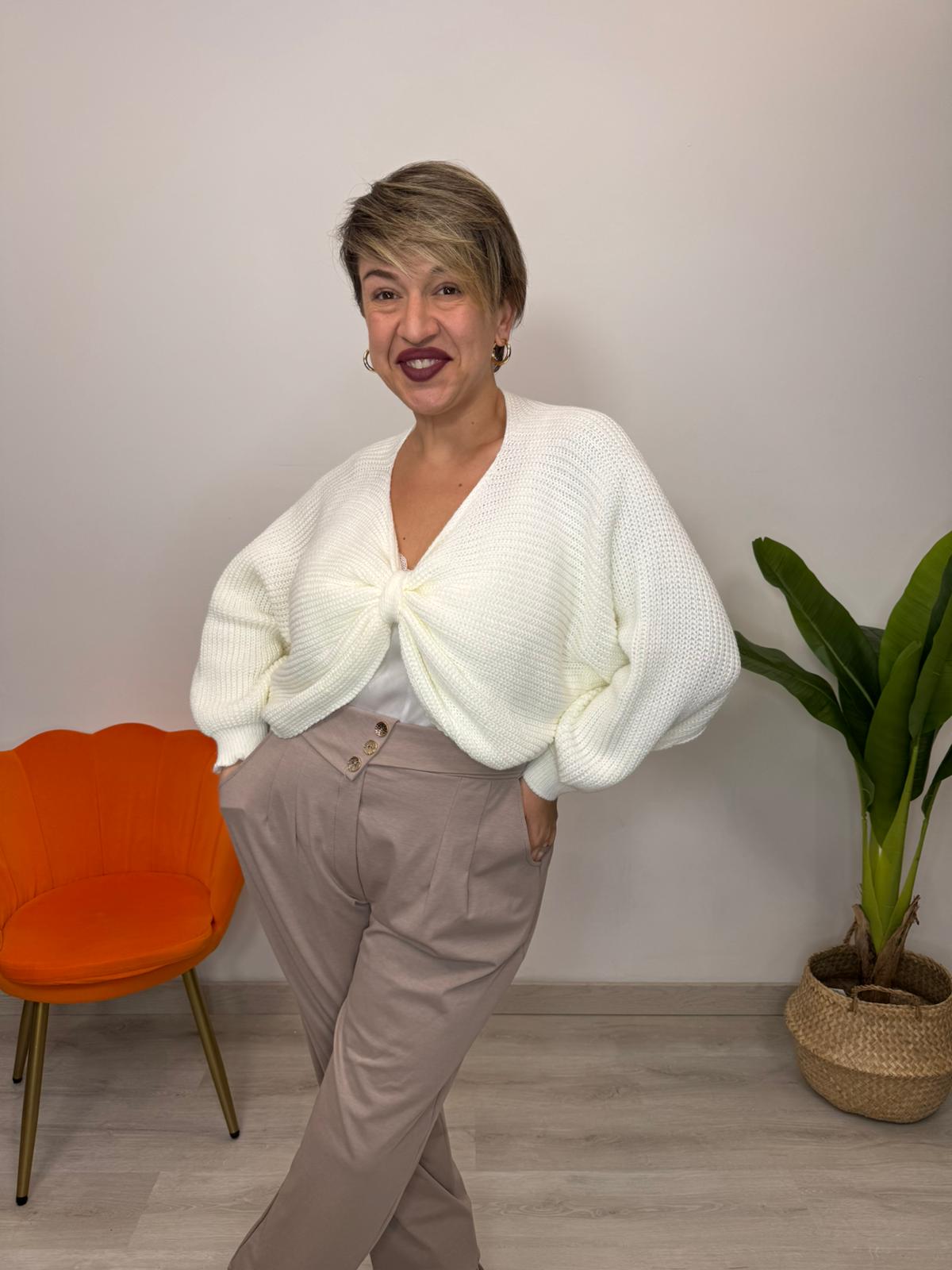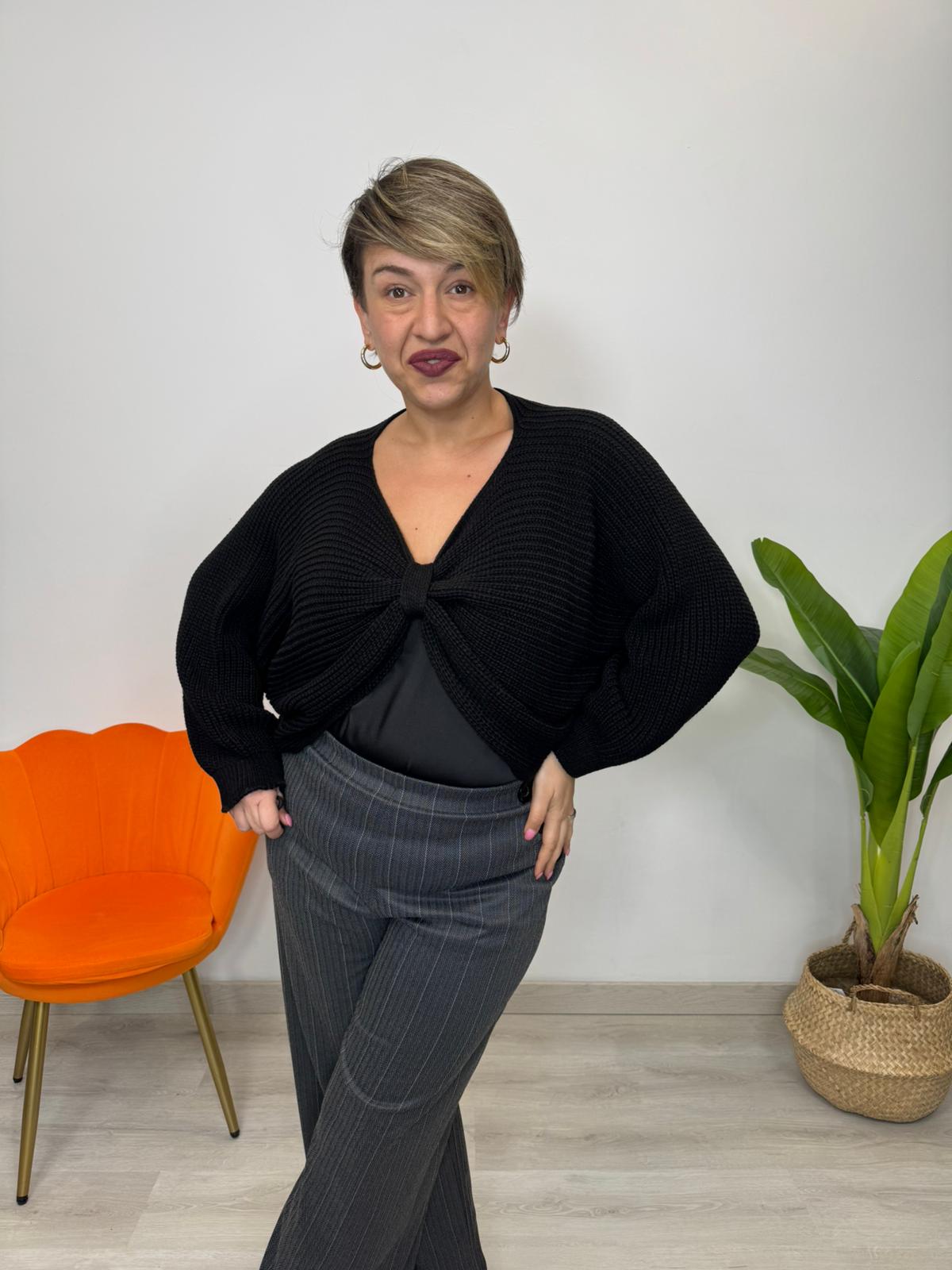 Maglia audace con nodo centrale che cattura lo sguardo e regala personalità al tuo look. Realizzata in tessuto caldo e avvolgente, perfetta per le giornate fredde senza rinunciare allo stile. Le maniche a pipistrello donano movimento e eleganza, mentre la vestibilità unica si adatta perfettamente dalle taglie 48 alla 54. Un capo versatile che trasforma il tuo guardaroba con un tocco di carattere e comfort.