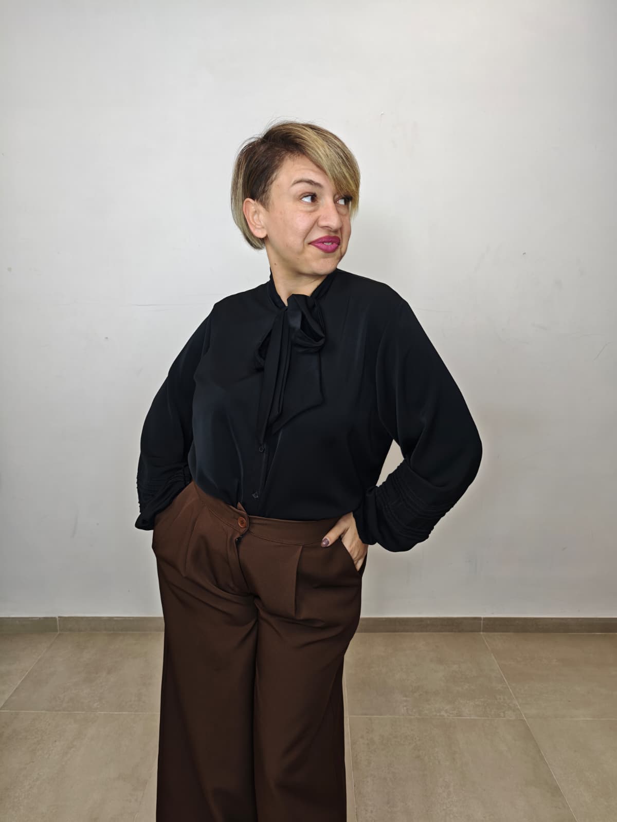 CAMICIA LADY - Eleganza senza compromessi per chi osa essere se stessa. Taglia unica che abbraccia dalla 48 alla 54 con una vestibilità generosa e confortevole, perfetta per muoversi con libertà. Le maniche leggermente a palloncino regalano un tocco di carattere e femminilità, mentre il fiocco regolabile al collo ti permette di giocare con lo stile: più sofisticato o più casual, come preferisci. Una camicia che non segue le regole, ma le reinventa.