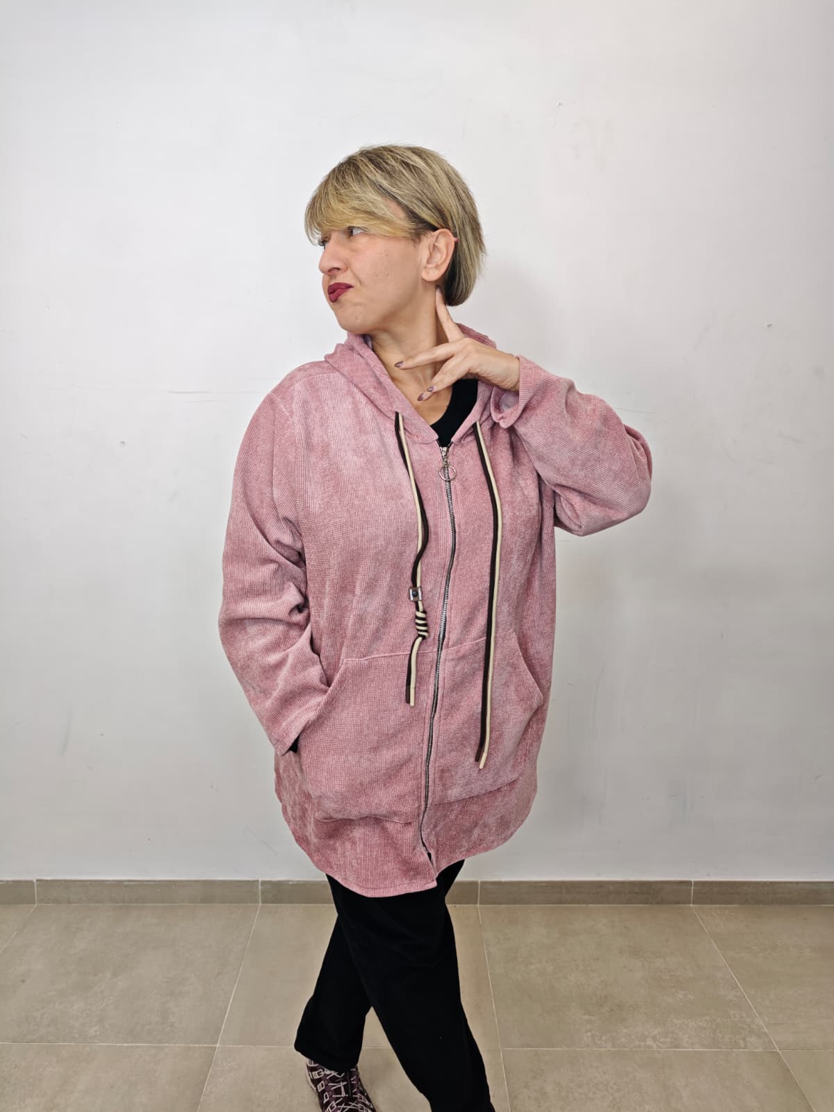 FELPA VERONIKA: audacia e comfort in un'unica silhouette. Realizzata in morbido tessuto vellutino, questa felpa oversize avvolge il corpo con eleganza senza compromessi. Dotata di cappuccio generoso e zip frontale, si adatta perfettamente dalla taglia 48 alla 54, celebrando ogni curva con stile. Un capo che non scende a compromessi: indossalo come vuoi, quando vuoi. Pura libertà di movimento.