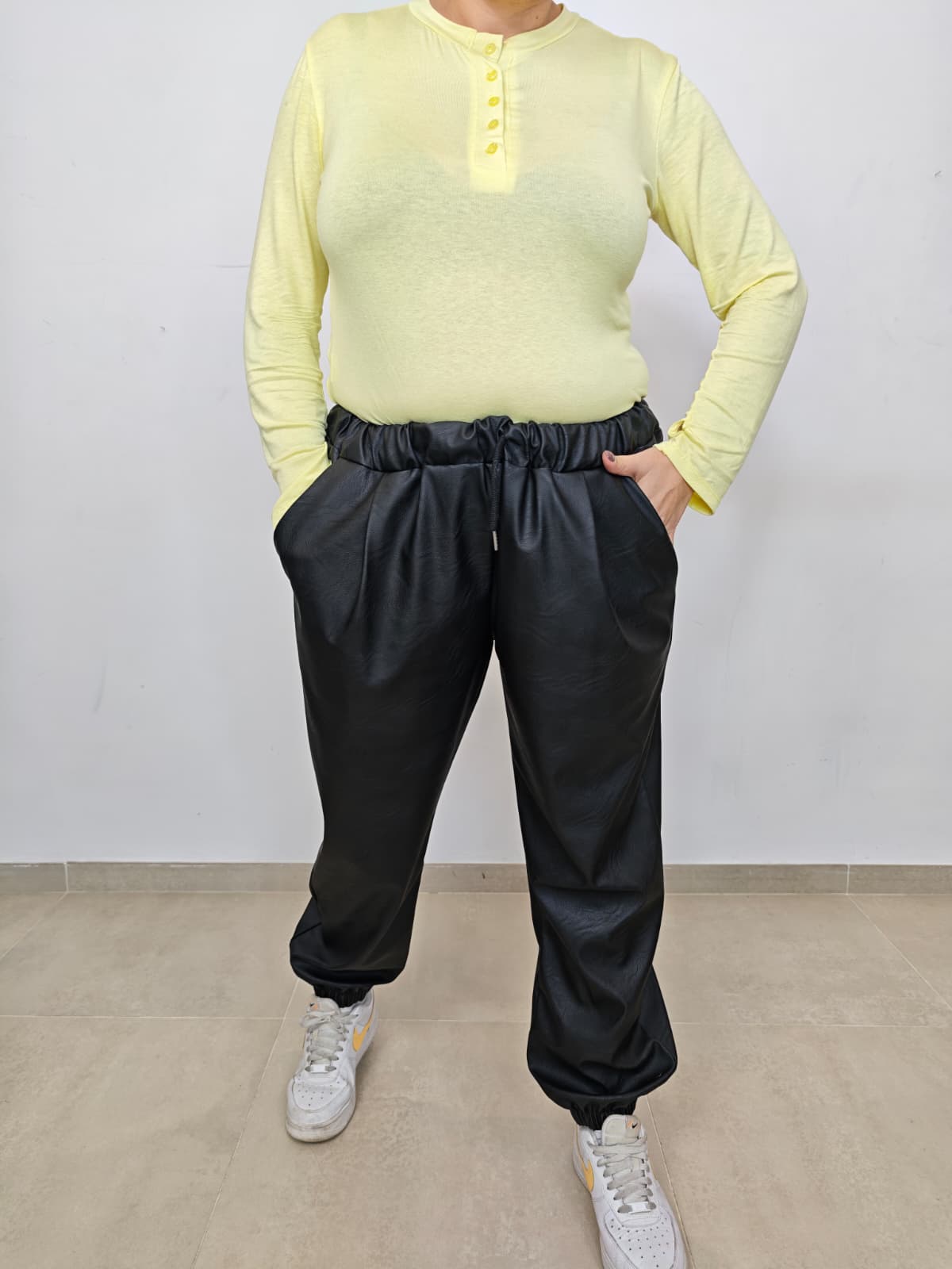 PANTAECO: il pantalone che non scende a compromessi. Realizzato in ecopelle sostenibile, abbraccia le curve con una vestibilità generosa dalla 48 alla 52. Vita elasticizzata per comfort totale, polsini elastici alle caviglie per una silhouette definita, e tasche laterali funzionali. Audace, versatile, irresistibile.