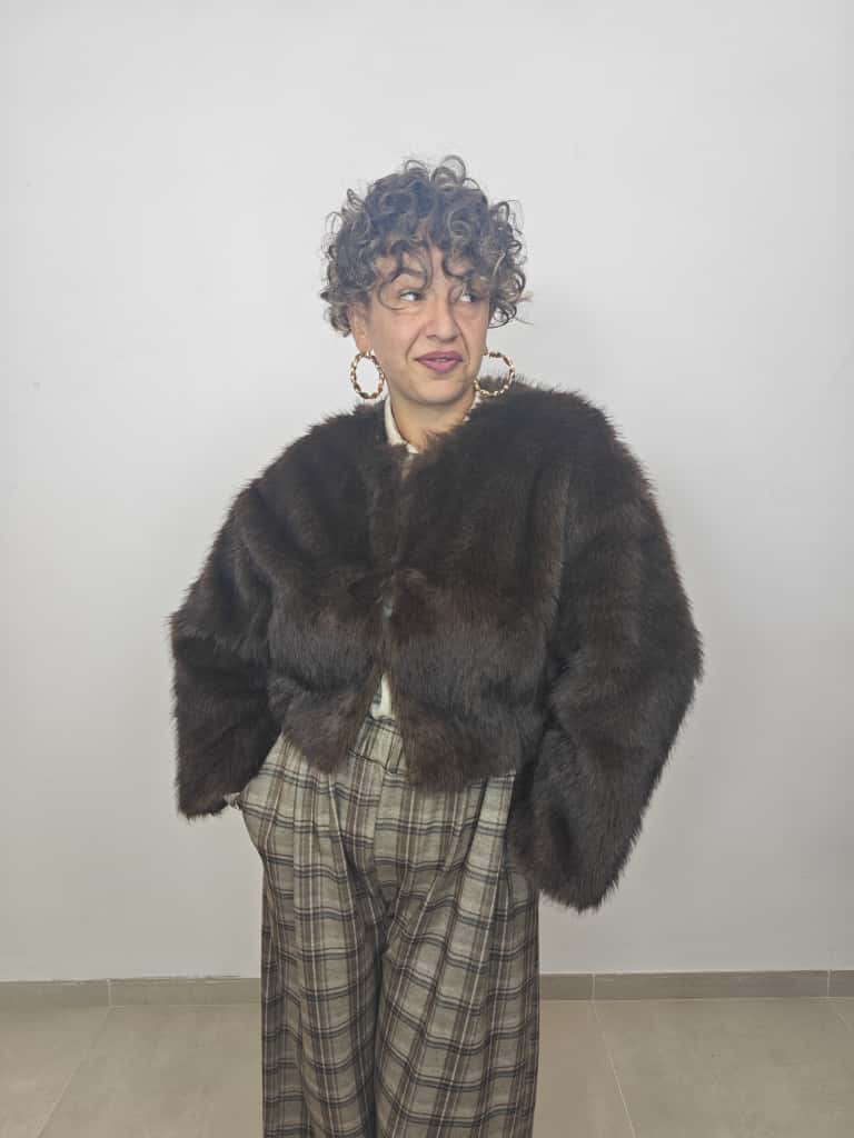 La pelliccia Vanity Crop, in taglia unica dalla 48 alla 54, combina stile audace e comfort. Il design a girocollo leggermente crop esalta la silhouette, mentre i ganci nascosti assicurano una chiusura elegante e discreta. Realizzata al 100% in poliestere, è la scelta perfetta per chi vuole distinguersi con un capo deciso e versatile.